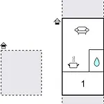 También hay una cocina, equipada con una nevera y utensilios de cocina.